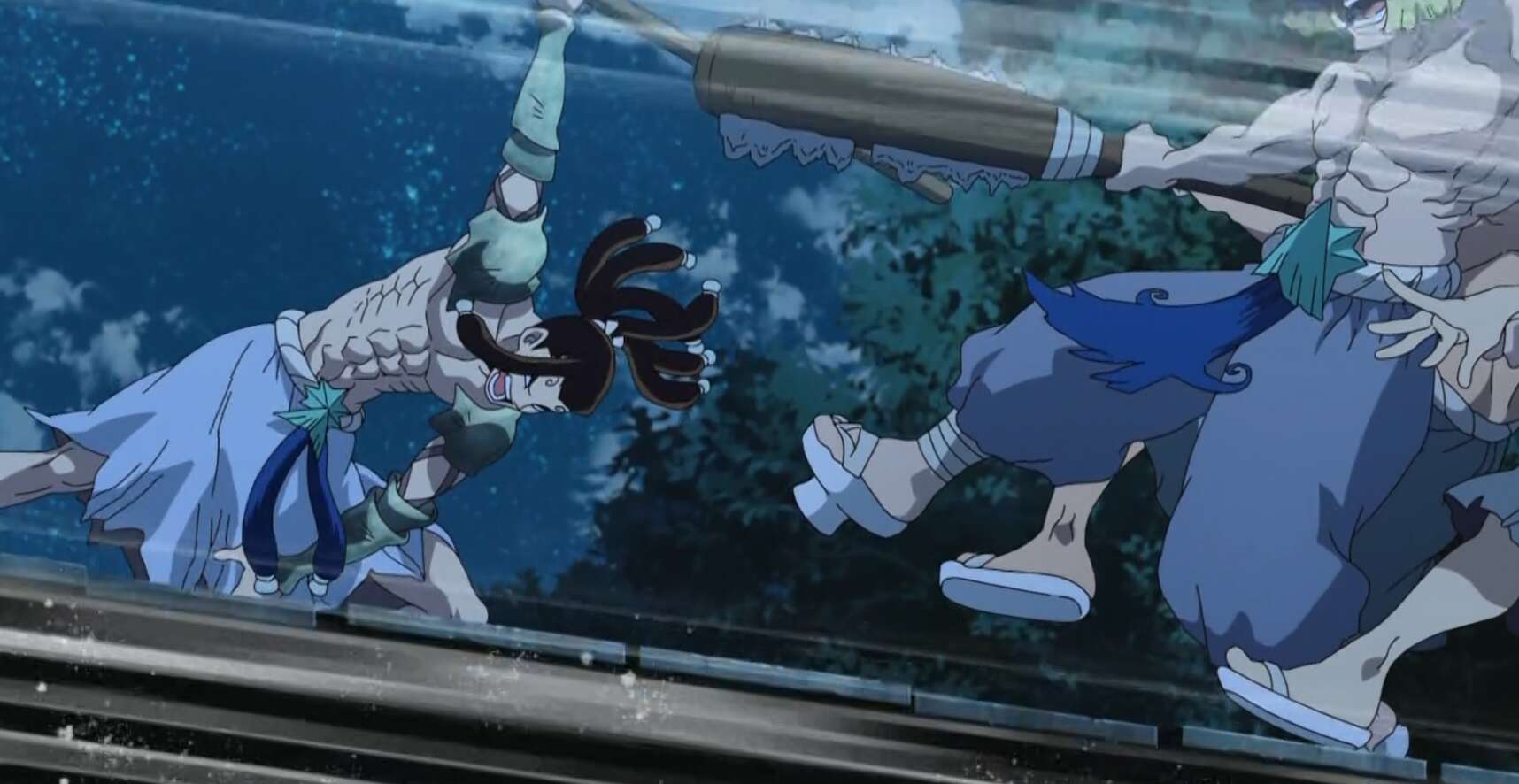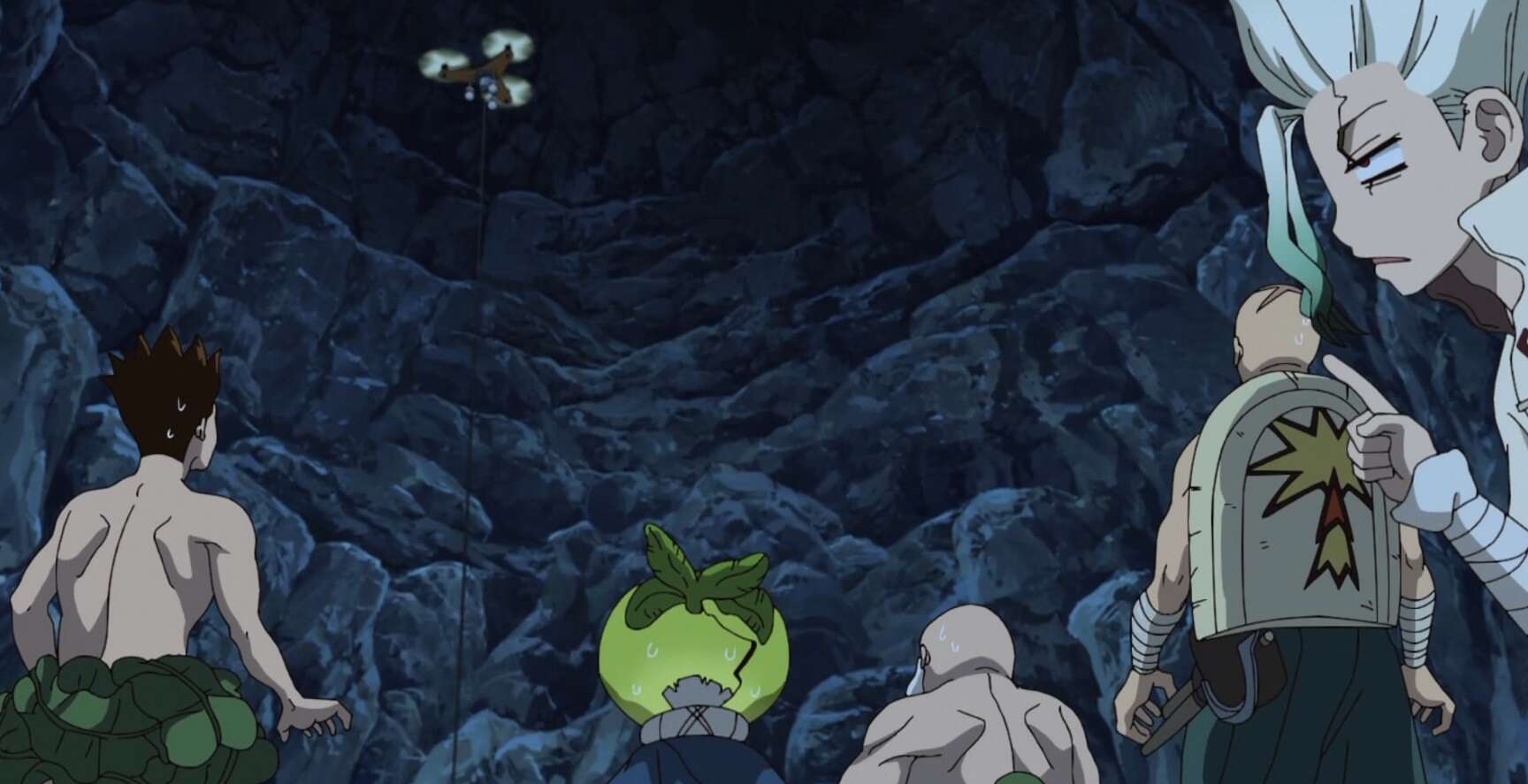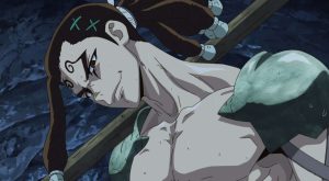 早速カセキを復活させようとしますが、背中にパーツが欠けている部分があり、このまま復活させると変な模様が残ってしまう事になり議論となります。しかし、大樹がさらに200~300往復、海底に潜ってくれたおかげで、他の石片や石像もほぼ全て回収出来、無事にカセキも石像から復活します。
