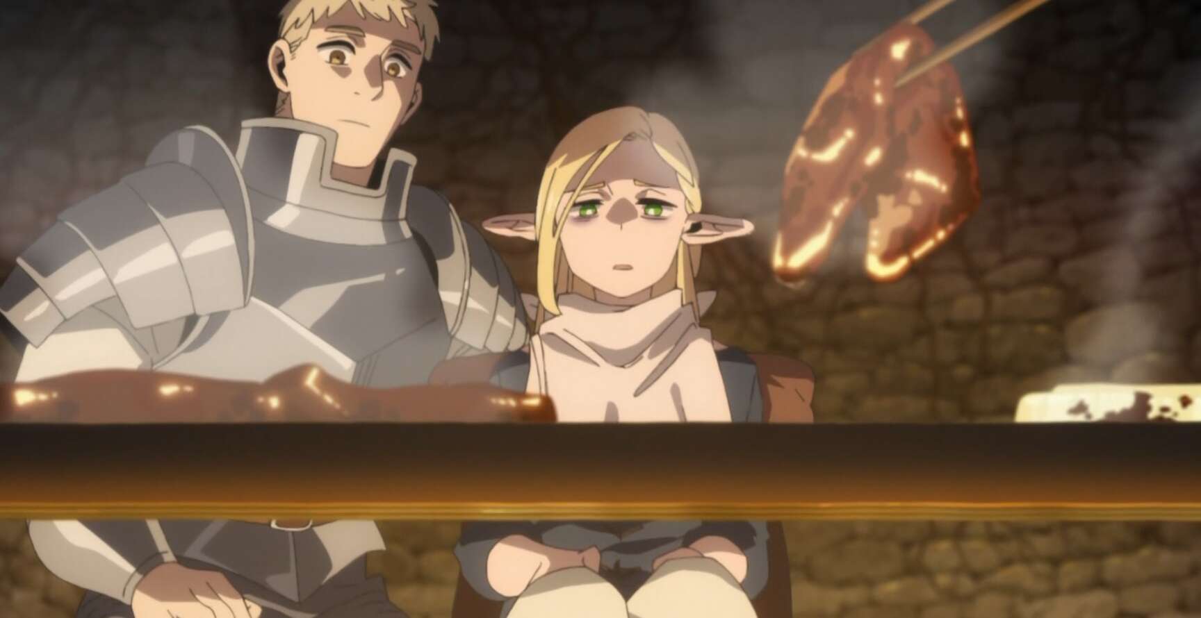 ライオスはマルシルに鉄分を補給してもらうため、ケルピーの肉で焼き肉を始めます。