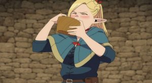 ファリンと一緒にダンジョンへと向かうマルシルですが、ファリンがバッタを捕まえたり、野生に生えている木苺を食べたりと、ファリンの自由奔放な行動に驚きます。