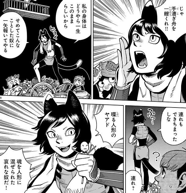 イヅツミはマルシルに、手漕ぎ船を一艘くれ!!と、言います。イヅツミはいつの間にか、ヤアドの魂が入った喋る人形ヤアドを持っていて、この人形と一緒に海を渡り黒魔術使いを倒すたびに出る、と言います。イヅツミの話をマルシルが聞くと、地図や海図、古代魔術史、道徳や倫理の本といった様々な本が頭上から落ちてきます。