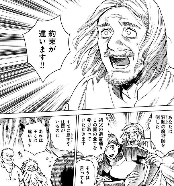 今はデルガルの肉体に入っているヤアドがライオスに対して、約束が違います!!と、怒っています。ライオスは王になる気はありませんが、ヤアドは祖父デルガルの遺言である、元凶である魔術師を討伐した者には国の全てを与える、の通りにこの国の全てを受け取って欲しいと強く願っています。カブルーも同意見で、長命種に渡るぐらいならライオスが受け取るべき、と考えています。