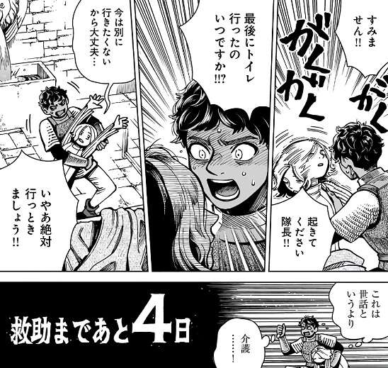ミスルンは、私はかつて迷宮の主だった、と言い40年程前の迷宮にまつわる過去の顛末を語り始めます。しかし、その話は恐ろしいほど複雑でカブルーでもいまいち理解できておらず、整理が必要でした。時間は余っていたため話を整理する事に問題はありませんでしたが、それよりもミスルンがあらゆる欲求を“感じない”体のため、食事や睡眠を自分一人ではこなせず、果てはトイレの世話までカブルーがしないといけない状況が問題でした。