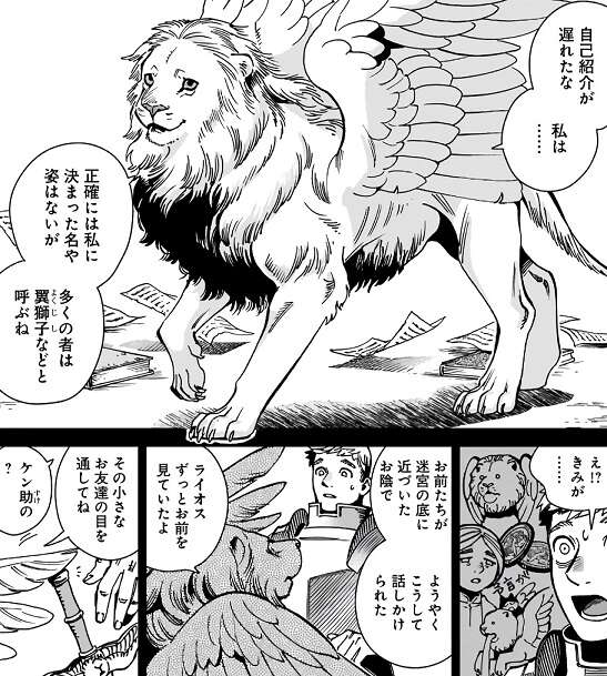 しかし、マルシルの姿をしたサキュバスに上手く丸め込まれ、さらにライオスの大好きな魔物の姿を見せてライオスの気を引いてライオスに信じて欲しいと言うと、ライオスは騙されてあっさりとサキュバスに精気を吸い取られてしまいます。気絶したライオスは夢の中で翼獅子を名乗る獅子に出会い、翼獅子からこの国の救世主としての自覚を持つように注意されます。