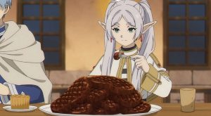 フリーレンにとっても難しいダンジョンですが、そんなことは気にせずダンジョンの中の宝箱を開けてはミミックに引っかかって、フェルンの世話になっています。