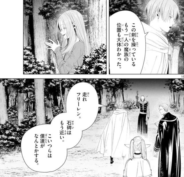 ヒンメルの攻撃が効いたようで、ようやくグラオザームの幻影が解除されます。さらにヒンメルはソリテールの位置も大体把握していて、フリーレンに石碑は近いので走るように言います。