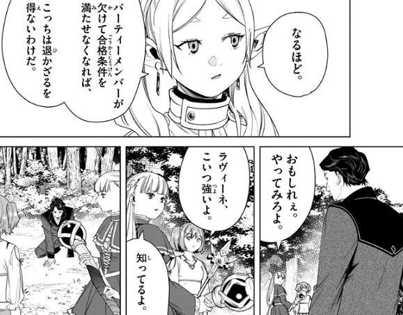 ゼンゼは、魔法使いの試験に魔力探知が通用しない獲物を選ぶなんて、と人が悪いとゲナウを非難します。捕まえられるかどうかは運任せで、争奪戦に見せかけた対人戦だ、とゼンゼは言いますが、運も実力のうちだとゲナウは言います。それに運以外で隕鉄鳥を捕まえた連中もいるようだ、とフリーレン達の第2パーティーの事を思い浮かべます。あと3時間で日没となり、第一次試験となるので対人戦が激化するとゲナウは予想します。
