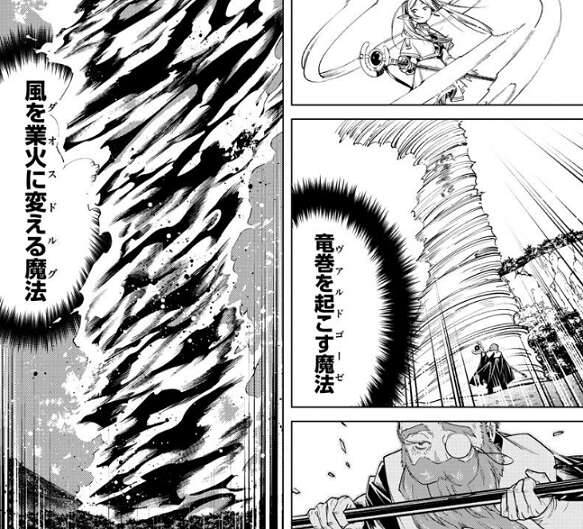 デンケンはラオフェンに、殺意がないことなどわかり切っておろうに、と言いますが、爺さんが死なない程度には痛めつけるつもりだったよ、とラオフェンは反論します。それでもデンケンはあのまま隕鉄鳥を奪われなければ、儂等が勝ったと勝ちに拘ります。ラオフェンがなんでそこまでして一級魔法使いになりたいんだとデンケンに聞くと、デンケンの故郷が北部高原の奥地にあり、魔族共が暴れたせいで今じゃ一級魔法使いしか入れない、久々に墓参りに行きたかった、と一級魔法使いになりたい理由を明かします。