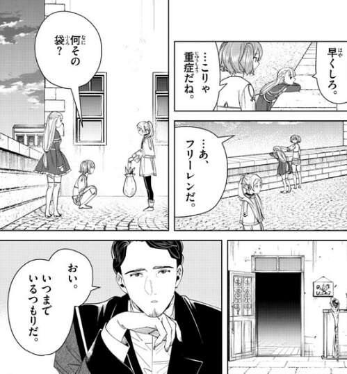 ラオフェンは、デンケンは不器用なんだ、とフォローをして店から出ていきます。二人から元気付けられ、多少気分が良くなったリヒターですが、そこにフリーレンが現れて、杖を修理して欲しいとやって来ます。