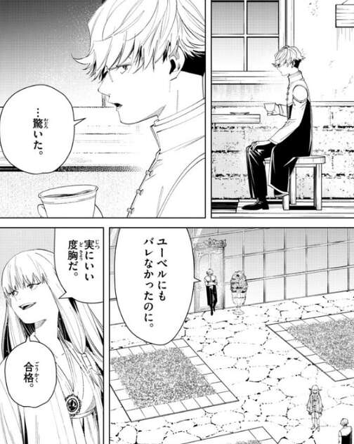 ユーベルの面談では、ゼーリエは何も言わずユーベルを眺めただけで、合格だと言います。ユーベルには会話は必要ないようで、会話が必要なのか?と、ゼーリエがユーベルに言うと、それもそうだね、とユーベルも返事をして同意します。