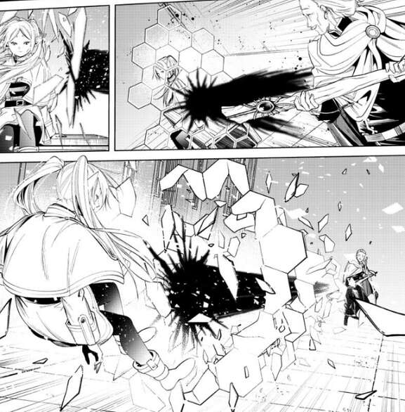 レルネンの魔法攻撃をフリーレンは防御魔法で防ぎますが、防御魔法を貫通しフリーレンは肩を負傷してしまいます。