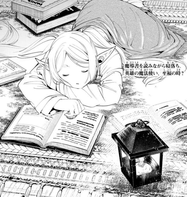 無事、竜の群れを討伐しフリーレンは村人から魔導書を受け取ります。村を出たフリーレン達ですが、フェルンはフリーレンが人助けをするときに、ほぼ毎回報酬を貰っている事を気にします。すると、ヒンメルがそうだったからね、とフリーレンが答えると、ヒンメルはそういうのは受け取らずに人助けをする人だと思っていました、とフェルンは意外そうに答えます。するとフリーレンはヒンメルとの思い出を話し始めます。フリーレンがある時、ヒンメルに人助けのとき毎回と言っていい程報酬を貰っている理由を聞きます。するとヒンメルは、報酬を貰っておけば貸し借りは無くなるから、とフリーレンに答えます。ヒンメルは、僕達が求めているのは誰かを助けることであって感謝の言葉じゃない、相手に貸しを作ってしまったら、本当の意味で助けたことにはならないだろう、と報酬を貰う理由をフリーレンに教えます。その時の事を思い出しながら、こんなくだらない魔法でも報酬として貰っておくんだよ、とフリーレンはシュタルクに報酬を貰う理由を教えます。しかし、その後嬉しそうにこの魔導書で本当に噛まないか実験しよう、と言っているフリーレンを見て、結局魔法が欲しいだけじゃないですか…、とフェルンに言われてしまいます。