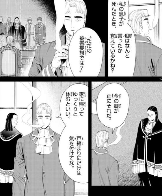 そして、グリュックの息子が死んだときに言われた、“ただの被害妄想では?”と言う言葉を引き合いに出して、実権を握った貴族に、家に帰ってゆっくり休むと言い、戸締りにだけは気を付けてな、とグルックは言います。