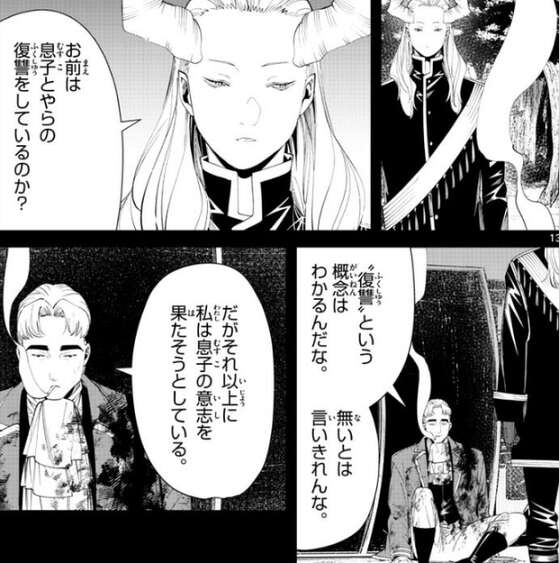 そんな事をつぶやくグリュックにマハトは一つ質問がある、と言うと、グリュックは煙草を吸い終わるまでならな、と答えます。マハトはグリュックに、“悪意”や“罪悪感”に関して質問します。グリュックは魔族には“悪”という概念自体がわからないんだろう、と推測し、その方が幸せと言います。そして魔族には“正義感”もないとグリュックは知ると、自分が城塞都市ヴァイゼの領主で実験などあってないような、お飾りの領主であることをマハトに話します。