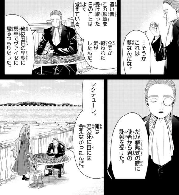 デンケンは夢の中で妻に、マハトに負けてしまった、実力の差を見せつけられ、この半世紀研鑽を怠ったつもりはなかったが、それでも届かなかった、と弱音を吐きますが、レクテューレはそれがどうしたの?と、答えます。今まで数え切れないほど負けてきたけど、それでも諦めなかった、最後まで醜く足搔くんでしょ?と、レクテューレがデンケンに言うと、デンケンは昔デンケンと行った指導試合に事を思い出します。