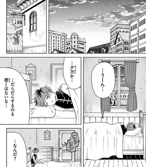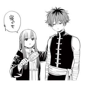 1人、宿屋で夕方まで寝ていたシュタルクは寝ぐせも結構、すごいことになっています。フェルンがシュタルクの寝ぐせを注意して、直してあげようとしています。私生活チェックはシュタルクに対しても、厳しそうです。