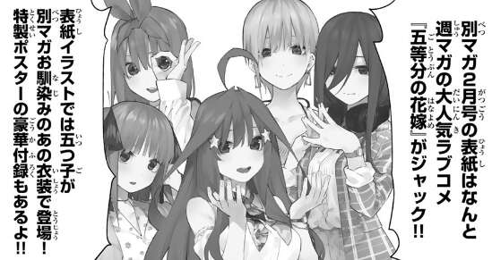来月の別冊少年マガジンでは、五等分の花嫁の特製ポスターがついてくるようです。
