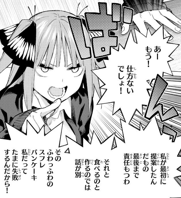 一方、二乃にとってもパンケーキは思い入れがあり、また初めて挑戦した料理だそうで、昔父親にパンケーキのお店に連れていってほしいとお願いしたことがあるぐらい、思い入れがあるそうです。