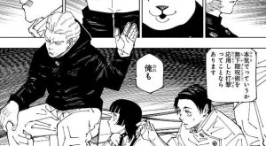 五条は夜蛾正道から事件の事を聞きますが、夏油が事件を起こしたと信じられず混乱します。その後夏油は家入の前に現れ、家入は五条に夏油が新宿に現れたと連絡します。