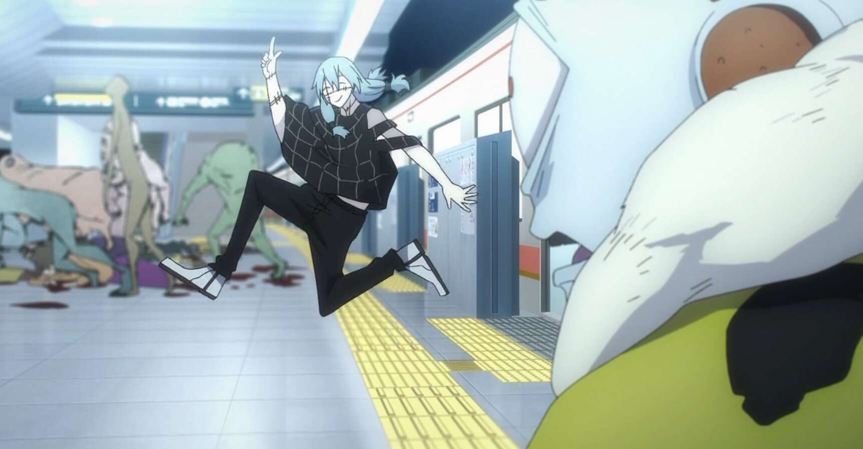 花御を倒し、一般人を巻き込みつつも五条は漏瑚や脹相相手にまだまだ余裕を見せます。しかし、そこに#32で東京メトロ 明治神宮前駅から渋谷駅へ向かった真人を乗せた電車が、ホームに到着します。電車には真人の他に大量の改造人間が乗っていて、改造人間はホームにいる一般人に無差別に襲い掛かります。