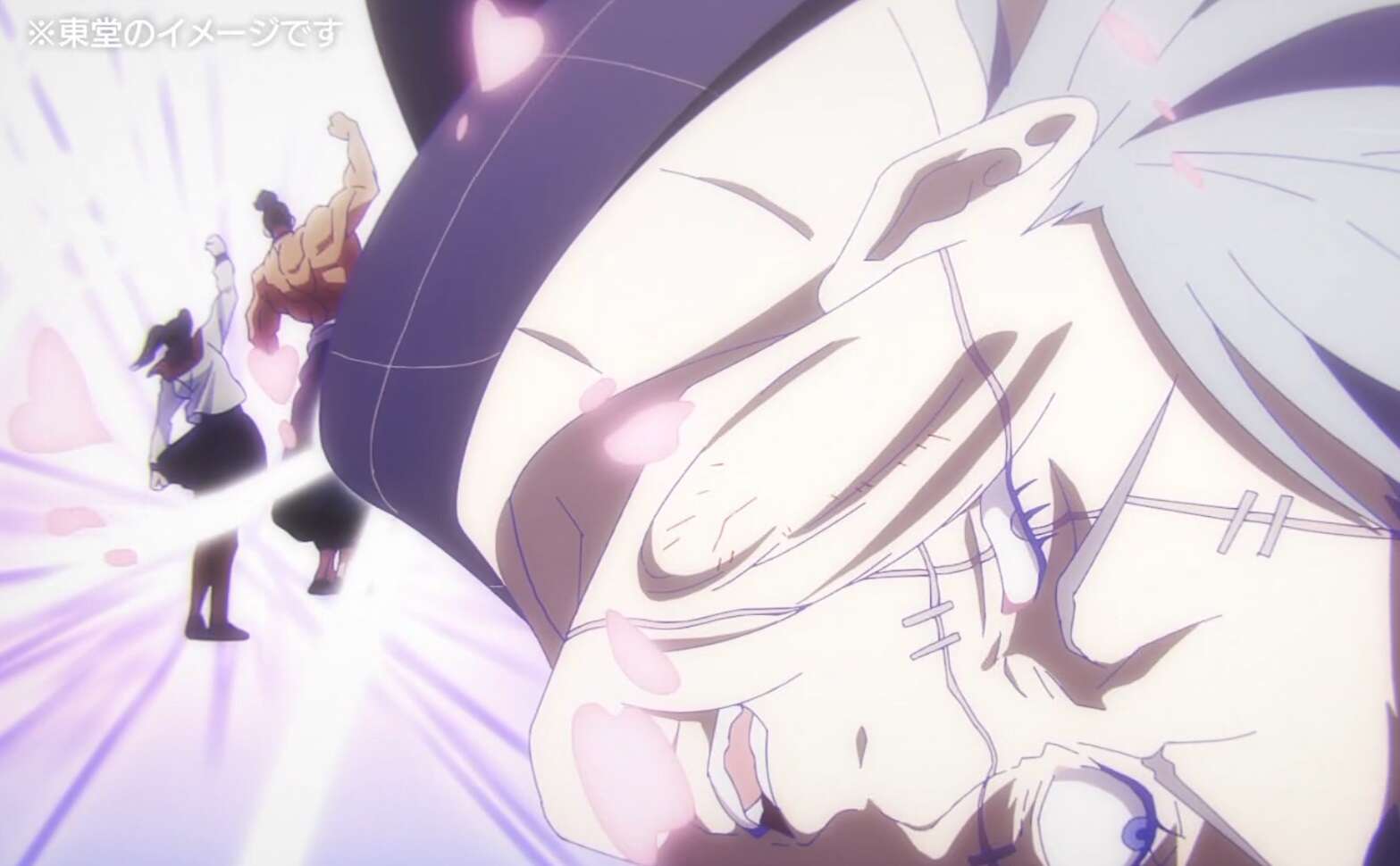 真人が東堂のロケットを見た時の反応ですが、アニメではかなり盛られていて演出が派手でした。高田ちゃんが真人を殴ったり、東堂が変身したりと意味不明でしたが、アニメならではの演出で楽しかったです。