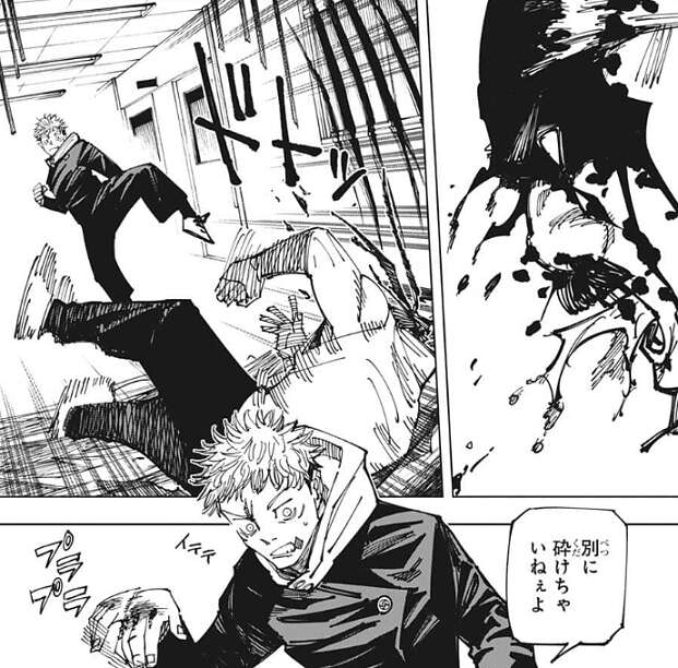 羽場はプロペラを止められ、頭から出血もしていますが、虎杖の拳からも出血しているのを見て、拳を砕いたと思い込みます。そして羽場は、この勝負おどれの負けじゃあ!!と、叫ぶと虎杖に勝利宣言します。