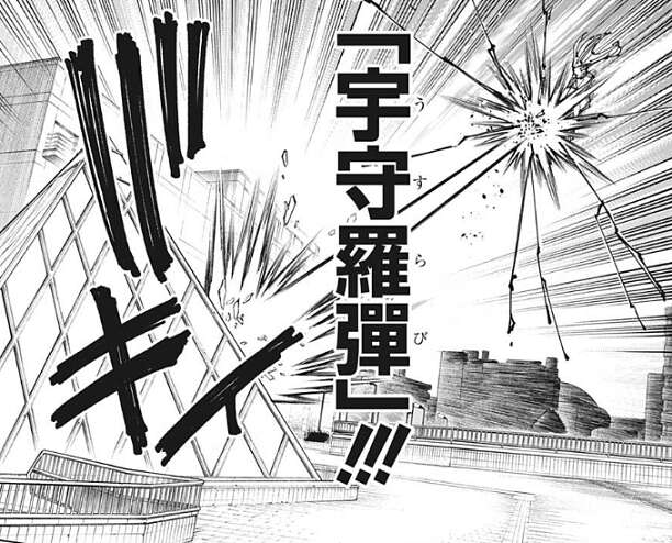 烏鷺は乙骨を宇守羅彈(うすらび)で攻撃し、乙骨をさらに建物に叩きつけます。