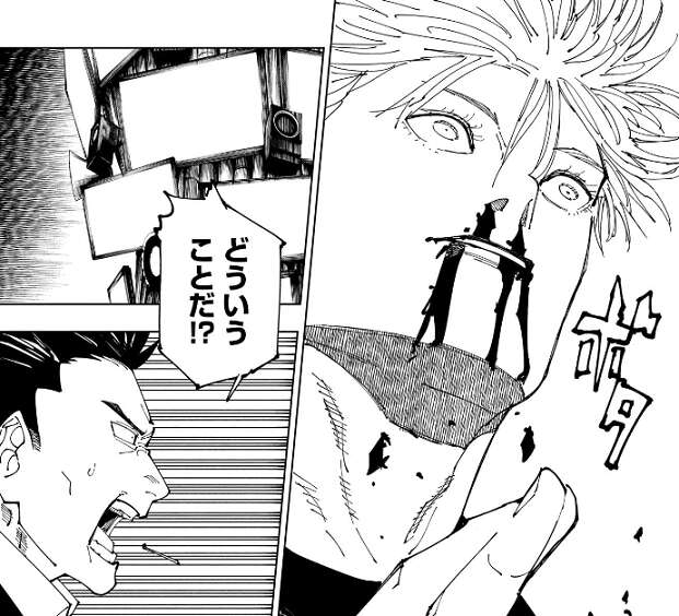 前も五条は鼻血を出していましたが、やはり反転術式による焼き切れた生得術式の修復でかなりの無理をしていたようです。一度自らの呪力で脳を破壊してから反転術式で治癒する事で、五条は焼き切れた術式をリセットしていたようです。宿儺の言葉を聞いた乙骨は、一回でもリスクが高すぎる!!と、驚きます。