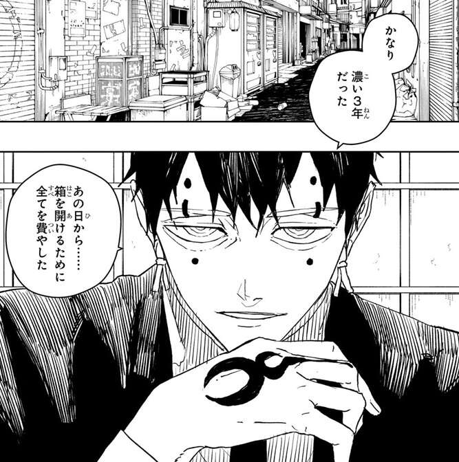 チヒロに斬られて瀕死の京羅は地形を変化させて真打の場所まで移動、実演だ、と会場のプレビュー映像で言うと、真打の力を披露しようとします。チヒロは真打の命滅契約を凌駕する“異質”、それを覆い隠す箱の封印は健在だと考えていましたが、実際は毘灼の統領が箱の封印を三年で解いていました。