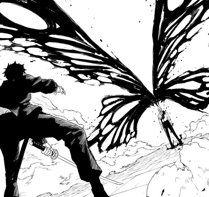 真打の箱は開けられ京羅が抜刀していない状態の真打を持ち、チヒロの前に現れます。そして、どこかの場所にいる剣聖が「勾罪」とつぶやくと、京羅の足元に草花が生え一匹の蝶が現れます。その蝶は京羅の手の部分に入っていくと、京羅の背中に強大な蝶が出現します。