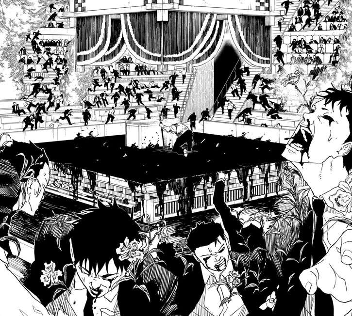 蔵の消滅を長引かせられるのは京羅の意志だけですが、会場の京羅の周りは真打によって黒い沼のようになっていて、競売人からは毒々しい花が咲き乱れていました。