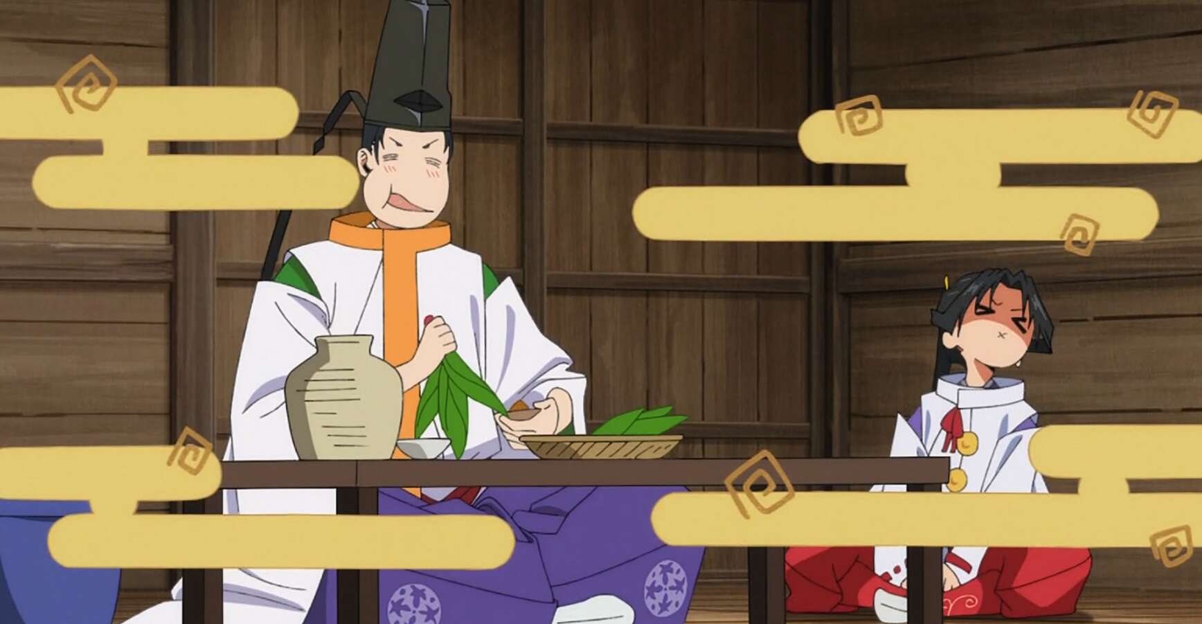 第十回では、頼重から一時的に失われた神力を取り戻すために時行は頼重の手伝いをしますが、郎党達が時行はド変態と誤解してしまい、時行はひどい目に遭います。最後は頼重に誤解を解いてもらい、頼重がド変態という事で決着しました。