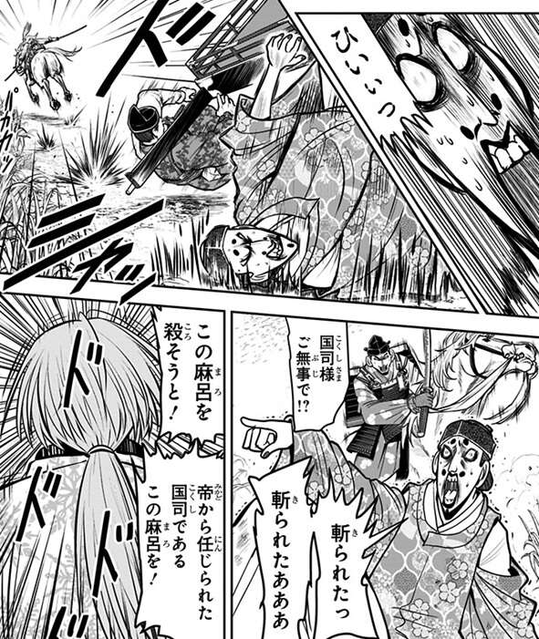 4巻では、1334年春に朝廷の威光を笠に自分勝手に重税を課していた国司・清原信濃守に対して、保科党が蜂起し反乱を起こします。諏訪頼重は時行と逃若党に、兵力差で圧倒的に劣る保科党の被害を最小限に抑えるように命じます。そして時行の説得や逃若党の奮闘で、保科とその郎党、妻子を国司軍から生きて逃がすことに成功します。