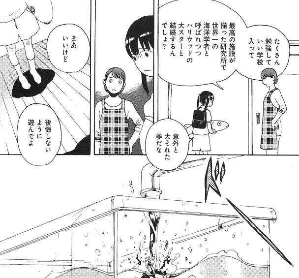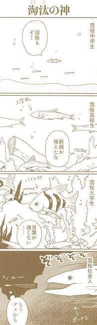 「わたしのかみさま」のその後、雪枝は順調に、中学生、高校生と成長していきますが、そのたびに神様のいる水槽に新顔の魚を追加していきます。雪枝は神様のいる水槽の中の世界を賑やかにしたいのかもしれませんが、次第に神様の手に負えない魚が増えていきます。