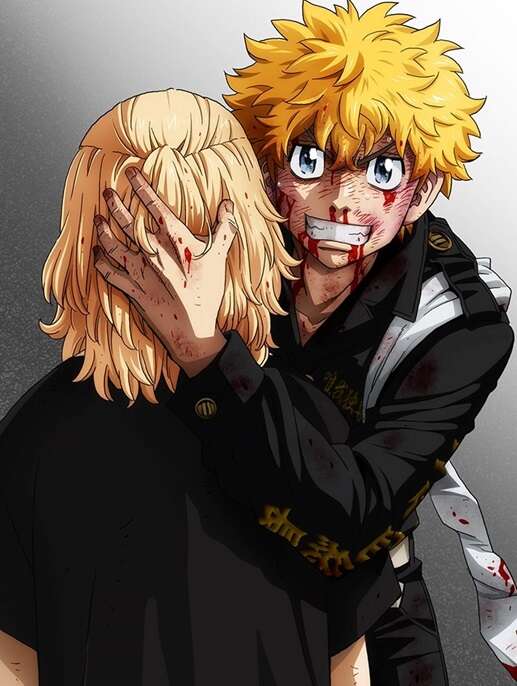 新キービジュアルでは、傷だらけの武道とマイキーが描かれています。