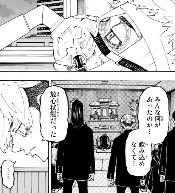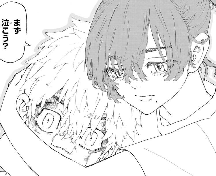 入院中の武道の元に、何人もの友人や元・東卍のメンバーが見舞いに訪れてくれますが、武道はみんなを巻き込めないと思い詰めていて、思い悩んでいました。そんな武道の様子を心配して、ヒナは武道に、まずは泣こう?と、優しく話しかけます。