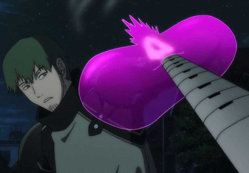 基地外部の街中でトリオン兵を率いて妨害を行っていたコスケロには、三輪と米屋が対応しますが、コスケロはブレードを斬れなくするシールドで米屋のブレードをブヨブヨにして、三輪達の邪魔をします。