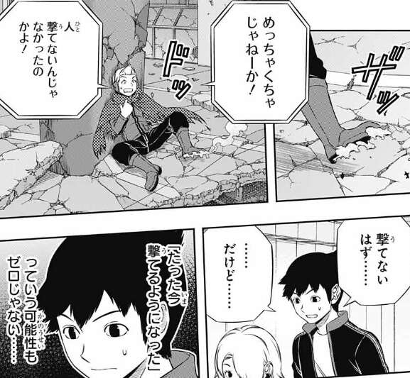 雨取も三雲もこれは想定していなかったようで驚いています。これを見た人も雨取がアイビスでの砲撃の威力は記録で見ていたようですが、炸裂弾を使った場合どうなるかを目の当たりにして全員驚いています。