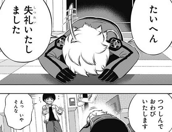 勘違いに気付き即土下座、謝罪をする空閑に、ふつうにしょっちゅう間違われるから気にしないで欲しいと帯島から言われます。緑川からも大げさじゃないと言われますが、空閑には苦い経験があります。